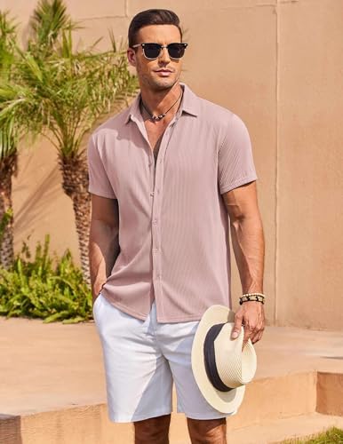 COOFANDY Men’s Casual Shirts Short Sleeve Button Down Shirt for Men Wedding Beach Fashion Shirt