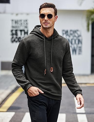 COOFANDY Mens Hooded Sweatshirt Casual Long Sleeve Drawstring Waffle Knit Pullover Hoodies