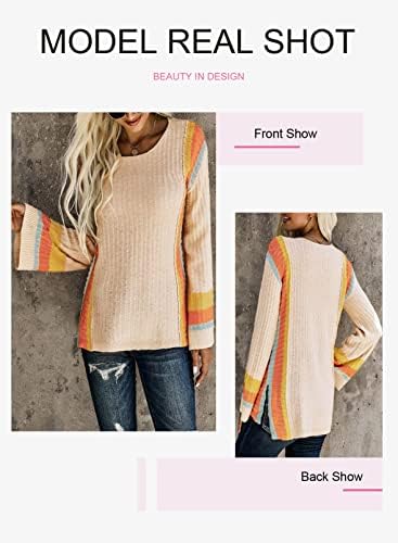 Dokotoo Womens 2024 Cute Summer Fall Color Block Striped Lightweight Comfy Cable Knit Beach Pullover Sweaters