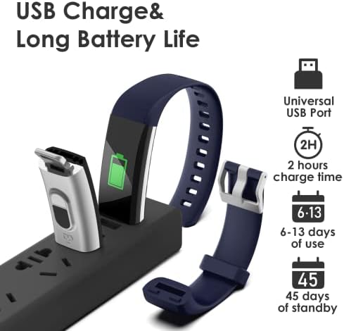 【USB Charge&Long Battery Life】- The fitness tracker built-in USB plug, which can be charged directly on any computer and USB charger; no adapter and charging cable required.It takes only 2 hours to charge and can be worked for 6-13 days and standby up to more than 30 days.(Noted: Both 2 sides can removed,but only metal piece can be charged .plug the metal piece with charging icon into any USB port .If the green charging icon isn’t show on screen,turn watch to another face and plug)