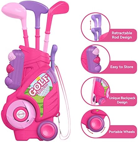 Liberry Toddler Golf Set for 1 2 3 4 5 Years Old, Upgraded Kids Golf Cart with Unique Shoulder Strap Design, Indoor and Outdoor Golf Toys for Boys Girls (Pink)