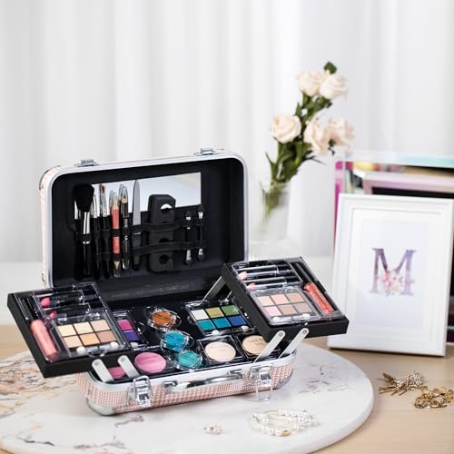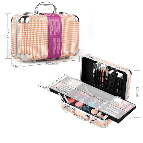 Makeup Kit Gift Set for Adults and Girls-Full Makeup Kit for Beginners Includes Eye Shadow Palette Blush Lip Gloss Lipstick Lip Pencil Eye Pencil Brush Mirror (GOLD)