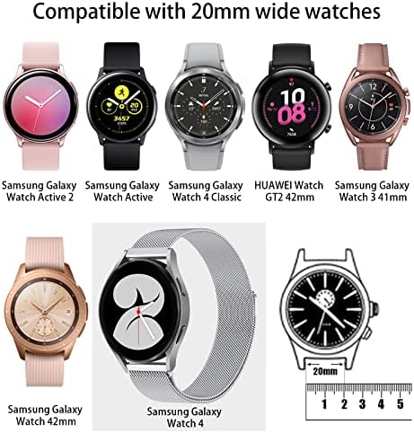 Metal Bands Compatible with Samsung Galaxy Watch 6 Band/Galaxy Watch 5/Galaxy Watch 4 Band, Galaxy Watch 5 Pro/Watch 6 Classic/Galaxy Watch 3/Active 2, 20mm Stainless Steel Wristbands Women Men