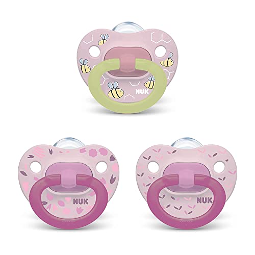 NUK Orthodontic Pacifier Value Pack,3-Pack (Pink Bee) 0-6 Months