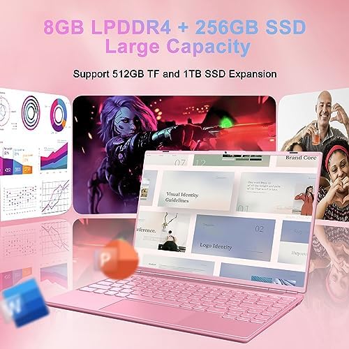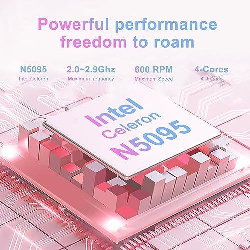 Ruzava/Aocwei 14″ Laptop 8GB DDR4 256GB SSD Celeron Intel N5095 (Up to 2.9Ghz) 4-Core Win 11 PC with Cooling Fan 1920 * 1200 2K FHD Screen Dual WiFi Support 1TB SSD Expand for Game Work Study-Pink