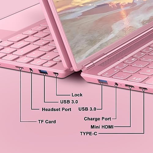 【HIGHLIGHTS & SUPERB FUNCTIONS】Laptop comes with a super powerful fan, have fast cooling function, Dual-band WIFI Internet access more smooth, Anti-theft buckle to improve security, new Type-C interface transmission charging, with a more comfortable use of the big keyboard cap, the body and keyboard color integration, making the computer more beautiful, best gift for child, parent and friends.