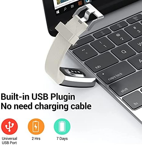[𝐁𝐮𝐢𝐥𝐭-𝐢𝐧 𝐔𝐒𝐁 𝐏𝐥𝐮𝐠 & 𝐈𝐏𝟔𝟕 𝐖𝐚𝐭𝐞𝐫𝐩𝐫𝐨𝐨𝐟]: The activity tracker is easy to charge with any USB socket on a computer, phone charger or power bank, no charging cable is required. Lasting up to 7 days battery life that fully charges in 2 hours. With IP67 waterproof grade, you can wear it while washing your hands or running in the rain.