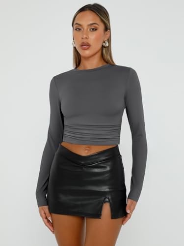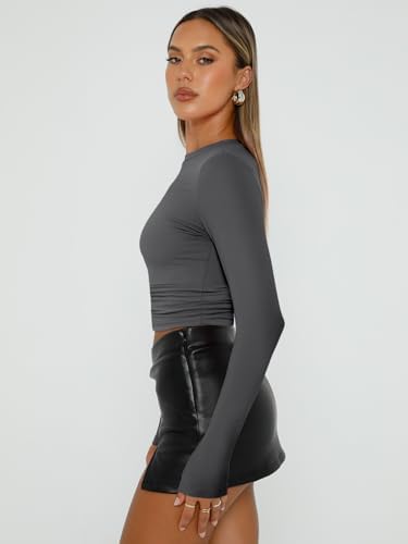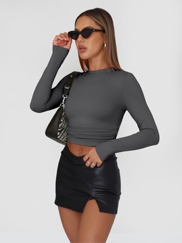 Trendy Queen Womens Long Sleeve Shirts Basic Spring Crop Tops Fall Fashion Layering Slim Fitted Y2k Tops
